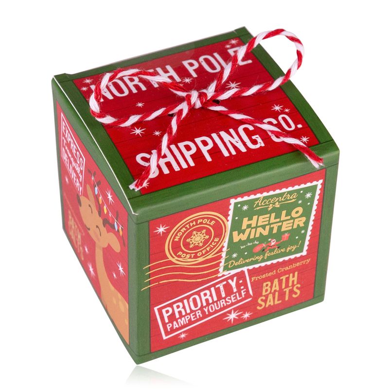Sare de baie cu parfum de merisoare, perfecta pentru bai lungi si relaxante dupa o zi friguroasa. Este ambalata in cutie de cadou de Craciun.